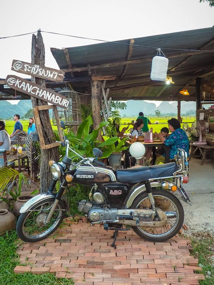 ที่ร้านระเบียงนา ในพื้นที่บ้านยาง หมู่ 2 ตำบลท่ามะขาม อำเภอเมือง จังหวัดกาญจนบุรี กำลังเป็นสถานที่เช็คอินสุดฮิตและร้านอาหารยอดนิยม