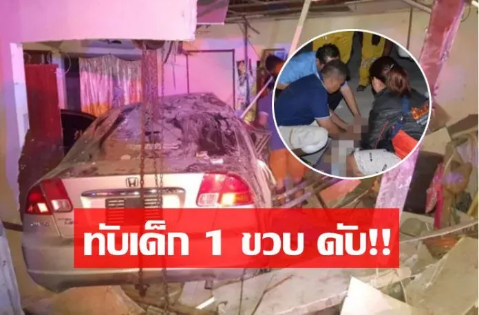 ที่เกิดเหตุซึ่งเป็นอู่ซ่อมเครื่องยนต์ ช่วงล่าง แอร์ ไดนาโม ชื่อ “อู่วัฒนะ การช่าง” ตั้งอยู่เลขที่ 58/1 ม.4 ต.บ้านใหม่ อ.เมือง จ.ปทุมธานี อยู่ริมถนน ภายในห้องนอนพบท้ายรถยนต์เก๋ง ฮอนด้า รุ่นซีวิค สีเทา หมายเลขทะเบียน กท-837 ปทุมธานี พุ่งเข้าไปทั้งคัน ทำให้ห้องนอนพังได้รับความเสียหาย สภาพรถพังเสียหายเกือบทั้งคัน มีนายจิรวัฒน์ ช่างศักดิ์ อายุ 33 ปี คนขับได้รับบาดเจ็บสาหัส แขนหัก ขาหัก เจ้าหน้าที่ฯ จึงรีบนำตัวส่ง รพ.ปทุมธานี พร้อมกันนี้ชาวบ้านกำลังพยายามช่วยกันค้นหาเสียงร้องของเด็กภายในห้อง
