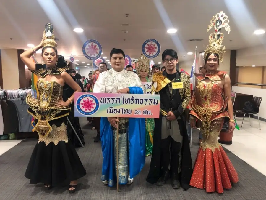 โดยกองเชียร์ของพรรคไทรักธรรม จัดเต็มแต่งกายด้วยชุดไทยแบบอลังการ และชุดพื้นบ้านซึ่งมาพร้อมกับหาบ ชะลอม ตะกร้าและกระจาดผลไม้ที่อุดมไปด้วยผลผลิต และสินค้าของดีประจำภาค