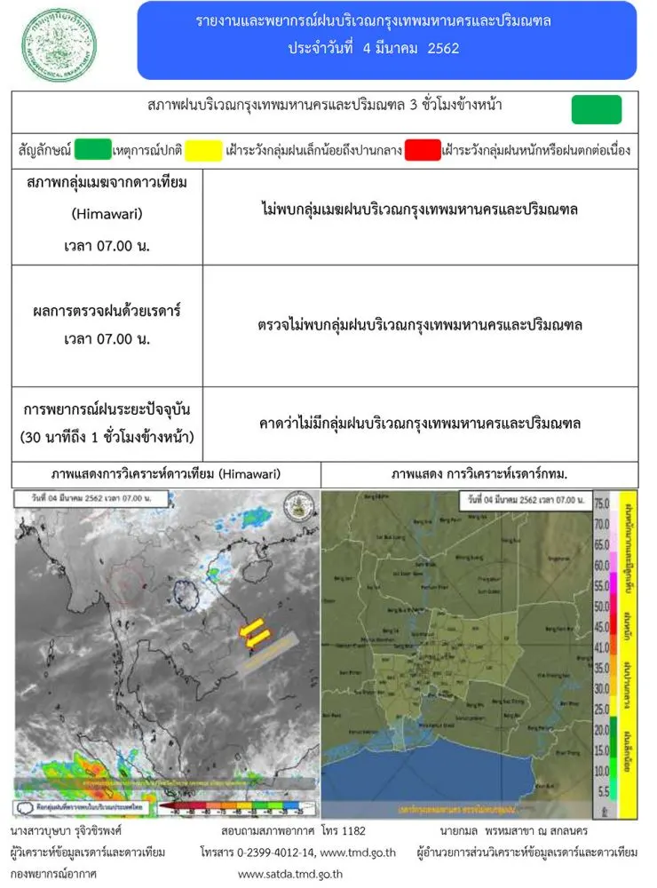 พยากรณ์อากาศสำหรับกรุงเทพฯ และปริมณฑล มีเมฆบางส่วน กับมีอากาศร้อนในตอนกลางวัน อุณหภูมิต่ำสุด 26-27 องศาเซลเซียส อุณหภูมิสูงสุด 33-37 องศาเซลเซียส ลมใต้ ความเร็ว 10-20 กม./ชม.