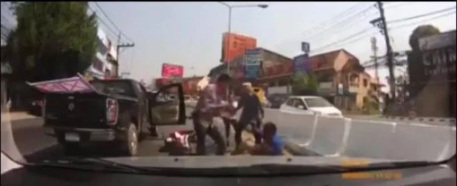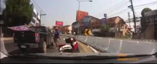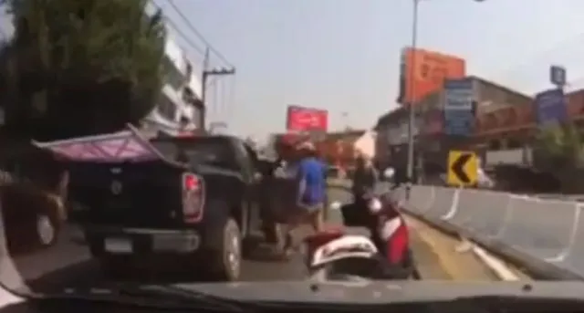 หนุ่มมอไซค์หัวร้อน โชว์กร่างทุบกระจก พังประตูปิคอัพดำ ชวนทะเลาะอยู่นาน สุดท้ายเจอคนจริงเข้าให้ (คลิป)