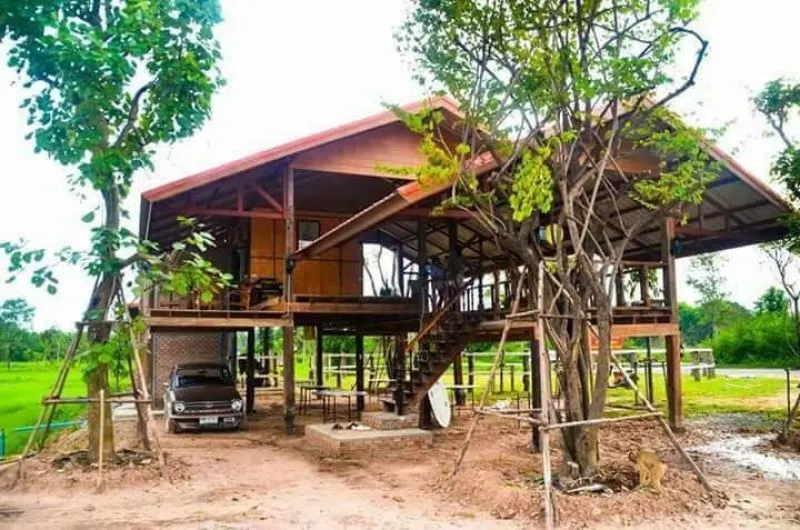 บ้านไม้ยกพื้นสูง โปร่งรับลม น้ำท่วมไม่ต้องกลัว และป้องกันสัตว์ร้ายขึ้นบ้านได้ สไตล์ไทยแท้ๆ อุบลราชธานี