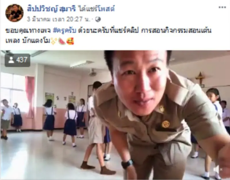 เรียกได้ว่าเป็นคลิปที่มีคนแห่แชร์กันเป็นจำนวนมาก เมื่อคุณครูพานักเรียนโชว์สเต็ปแดนซ์เต้นเพลง บักแตงโม โดยสมาชิกเฟสบุ๊คที่ใช้ชื่อว่า สิปปวิชญ์ สุมารี ได้โพสคลิปพร้อมข้อความว่า