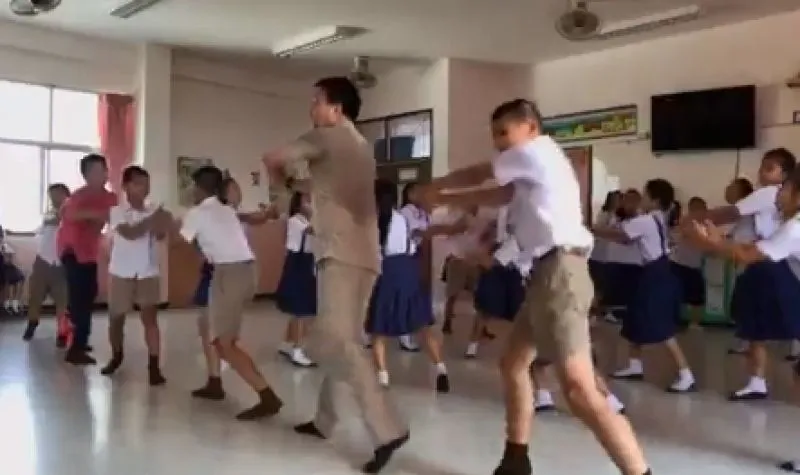 คนแห่ดูเป็นล้าน ครูหนุ่มสายแดนซ์สอนนักเรียนป.4 เต้นเพลงบักแตงโม เอวพริ้วมาก บอกเลยไม่มีใครยอมใคร (คลิป)