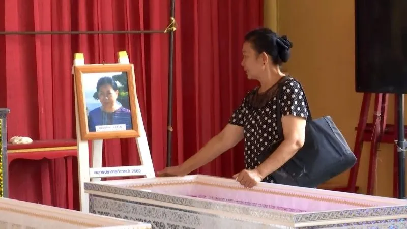 ต่อมานายสมศักดิ์และญาติที่รอรับอยู่ที่วัดทั้งหมด เมื่อเห็นโลงศพต่างพากันเข้าไปเคาะโลงพร้อมกับเรียกวิญญาณน้องกลับบ้าน และร้องไห้ด้วยความเสียใจในการจากไปไม่มีวันกลับของสมาชิกในครอบครัว จากนั้นเจ้าหน้าที่มูลนิธิสว่างนำศพทั้งหมดขึ้นไปบนศาลาสุชิน พร้อมกับสัมภาระของผู้ตาย ก่อนจะตรวจสอบอัตลักลักษณ์บุคคลเป็นครั้งสุดท้าย และนำศพทั้ง 5 คน บรรจุลงโลงที่ญาติเตรียมไว้ ก่อนจะมีพิธีสวดบำเพ็ญกุศล ในช่วงเวลา 19.00 น. ซึ่งกำหนดเป็นเวลา 7 วัน และฌาปนกิจต่อไป
