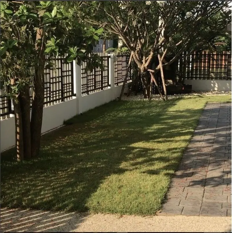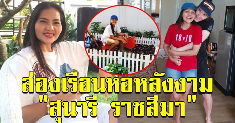 เรือนหอของ สุนารี ราชสีมา กับสามี วาวเตอร์ เป็นบ้านเดี่ยวสองชั้น ล้อมรอบด้วยความร่มรื่นจากสวน โดยการจัดสวนแบบทรอปิคอล เน้นไม้เมืองร้อน ทั้งต้นลีลาวดี ต้น Bird of Paradise และไม้ดอก ไม้ประดับต่างๆ ในมุมสวน จัดวางบ่อน้ำพุ ขนาดใหญ่ แบบโมเดิร์นสีดำ เพิ่มความชิคให้สวนในบ้านได้อย่างเรียบง่าย ตกแต่งจัดวางเก้าอี้หวายสีขาวไว้นั่งชิลล์กลางสวนให้ชมความเขียวขจีกันเพลินๆ เฟอร์นิเจอร์ในบ้าน เป็นโทนเรียบๆ ไม่เน้นลวดลาย บรรยากาศบ้านของคุณสุนารีนั้นดูร่มรื่นน่าอยู่เพราะเป็นบ้านเดี่ยวที่ตั้งอยู่ท่ามกลางพื้นที่สวน นอกจากนั้นภายในบ้านยังมีสุนัขตัวโปรดทั้งเจ้าสงบและเจ้าสงัด สุนัขต่างสายพันธุ์แต่น่ารักน่าเอ็นดู