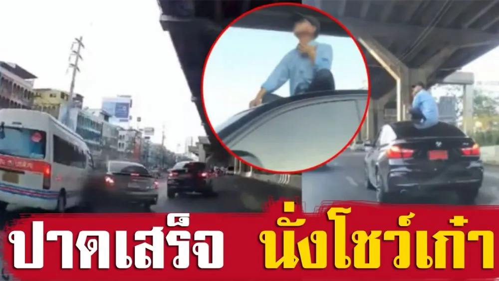 หนุ่ม BM โชว์เก๋า ขับรถปาดกัน จนไปชนรถตู้ แถมยังทำเป็นเท่ห์ ขึ้นไปนั่งชิวบนหลังคารถ (คลิป)