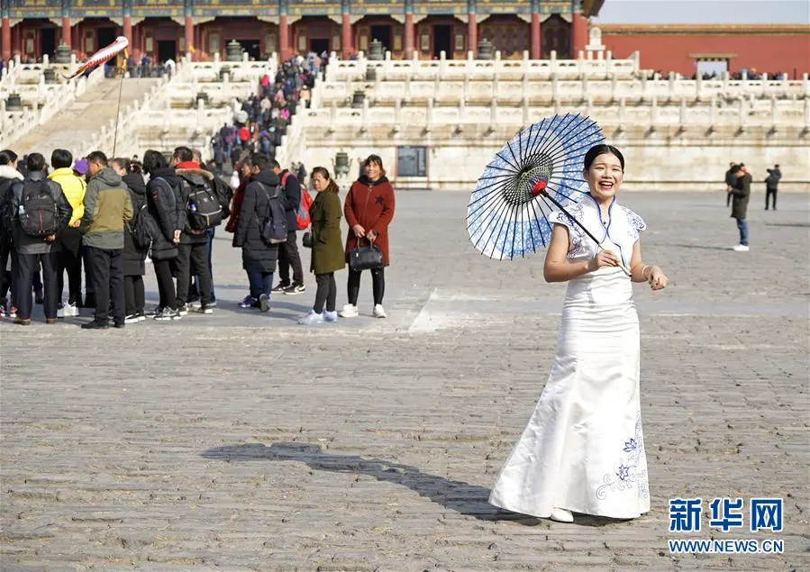 ต้อนรับวันสตรีสากล!พนักงานหญิงแต่งกี่เพ้าเดินชมวังต้องห้าม
