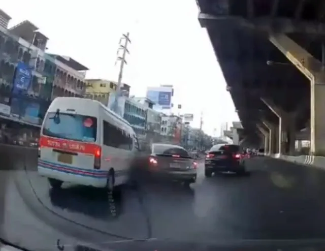 ต่อมามีการเปิดเผยภาพจากกล้องหน้ารถ โดยเป็นภาพของรถเก๋ง BMW คันดังกล่าวขับอยู่ในเลนกลางของถนน แล้วมีรถยนต์นิสสัน สีเทา เปลี่ยนเลนมาจากด้านขวา รถบีเอ็มคันนี้จึงปาดหน้าคืนอย่างรวดเร็ว จนรถเก๋งคู่กรณีแฉลบไปชนรถตู้ในเลนซ้ายสุด