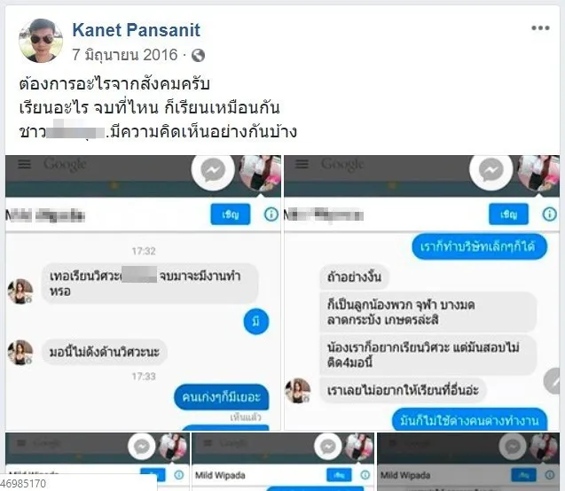 7 มีนาคม 2562 เป็นเรื่องทันที เมื่อหนุ่มลูกเจ้าของโรงงานถูกสาวคนหนึ่งในแชทเหยียด โดยกล่าวทำนองว่าเรียนทำไมวิศวะ ม.เอกชน เรียนไปก็ต้องไปเป็นลูกน้องคนที่เรียนจบมาจาก จุฬาฯ บางมด ลาดกระบัง เกษตร