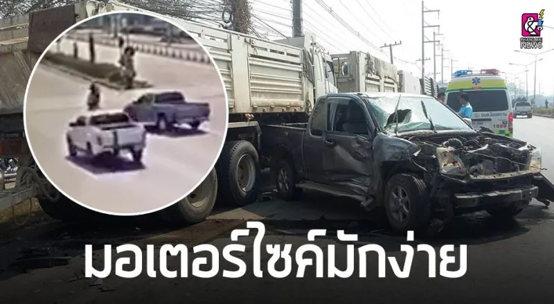 เผยคลิป!! อุทาหรณ์ความมักง่าย เปลี่ยนเลนกะทันหัน กระบะหักหลบรถพังยับหวิดดับ