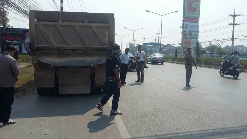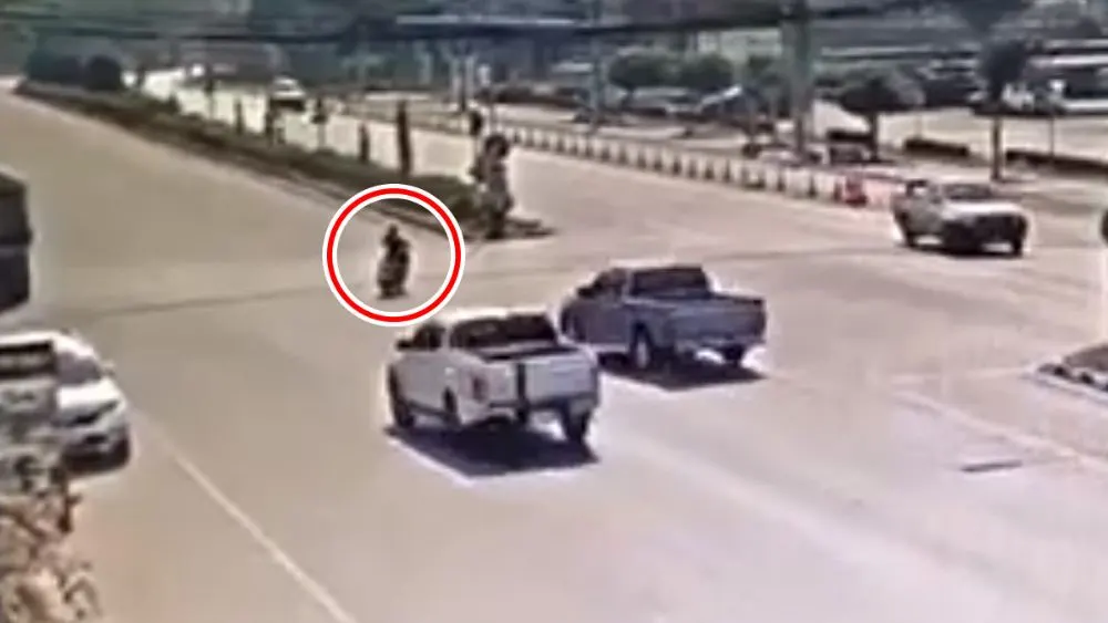 สาวขี่มอเตอร์ไซค์ตัดหน้าชิลๆ แต่กระบะเบรกจนเสียหลักพุ่งชนสิบล้อ เจ้าตัวลั่นไม่รู้ว่าเป็นสาเหตุให้รถชนกัน