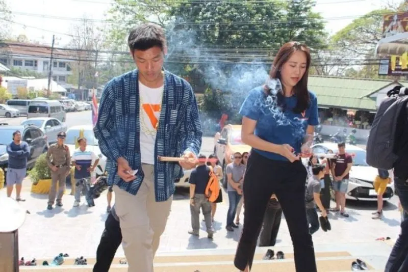 เมื่อวันที่ 9 มี.ค. ผู้สื่อข่าวรายงานว่า ที่อนุสาวรีย์ครูบาศรีวิชัย เชิงดอยสุเทพ ต.สุเทพ อ.เมือง จ.เชียงใหม่ นายธนาธร จึงรุ่งเรืองกิจ หัวหน้าพรรคอนาคตใหม่ ได้ขี่รถจักรยานยนต์ ทะเบียน 1 กบ 2725 เชียงใหม่ โดยมีนางรวิพรรณ จึงรุ่งเรืองกิจ ภรรยา นั่งซ้อนท้าย เพื่อกราบสักการะขอพรสิ่งศักดิ์สิทธิ์ โดยมีประชาชนและแฟนคลับรอมอบช่อดอกไม้ ขอถ่ายรูปเซลฟี่ และขอลายเซ็นในหนังสือประวัติของนายธนาธร เพื่อเก็บไว้เป็นที่ระลึก