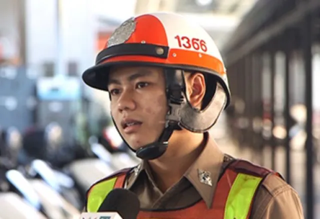 จากนั้นตนจึงเข้าไปตักเตือนอีกครั้ง แต่ก็ยังยิ่งเฉยอยู่ ตนจึงไปหยิบอุปกรณ์บังคับล้อออกมาขู่ว่าจะบังคับใช้กฎหมายแบบจริงจัง ชายคนดังกล่าวจึงขยับรถออกไปประมาณ 10 เมตร และจอดเล่นโทรศัพท์ต่อ ตนจึงขี่รถจักรยานยนต์ไปจอดดักไว้ข้างหน้า และขอตรวจสอบใบอนุญาตขับขี่ แต่ชายคนดังกล่าวไม่นำออกมาแสดง และพยายามจะขับรถหลบหนี โดยขับถอยหลัง แล้วขับเดินหน้ามาชนขาตน เพื่อผลักให้เจ้าหน้าที่ถอยออกไป ตนจึงใช้เหล็กล็อกล้อเอาไว้กันการหลบหนี และจะตรวจสอบประวัติว่าเคยทำผิดหรือมีคดีอะไรหรือไม่ แต่ชายคนดังกล่าวเข้ามาขัดขวาง ตามเหตุการณ์ที่ปรากฏในคลิป กระทั่งพลเมืองดีที่อยู่แถวนั้น และคนที่สัญจรผ่านไปมาช่วยเข้ามาห้าม ตนจึงทำบันทึกจับกุมตัวนำส่ง สน.พญาไท ดำเนินคดีต่อไป