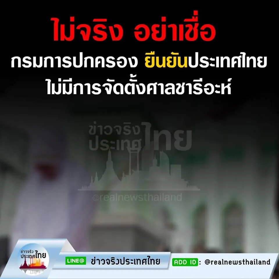 ไม่จริง อย่าเชื่อ กรมการปกครอง ยืนยันประเทศไทย ไม่มีการจัดตั้งศาลชารีอะห์