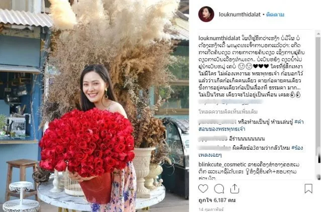 ล่าสุด วันนที่ 14 ก.พ ที่ผ่านมา ลูกน้ำได้โพสต์ภาพตัวเองถือดอกกุหลาบช่อใหญ่แต่ชาวเน็ตแอบจับผิดว่าข้อความที่โพสต์นั้นเหมือนจะแซะ “ญิ๋งญิ๋ง” นะ