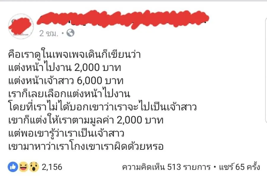 เพจแต่งหน้าโวย!! ลูกค้าไม่มีสำนึก บอกจ้างแต่งหน้าไปงาน แต่ความจริงไปเป็นเจ้าสาว