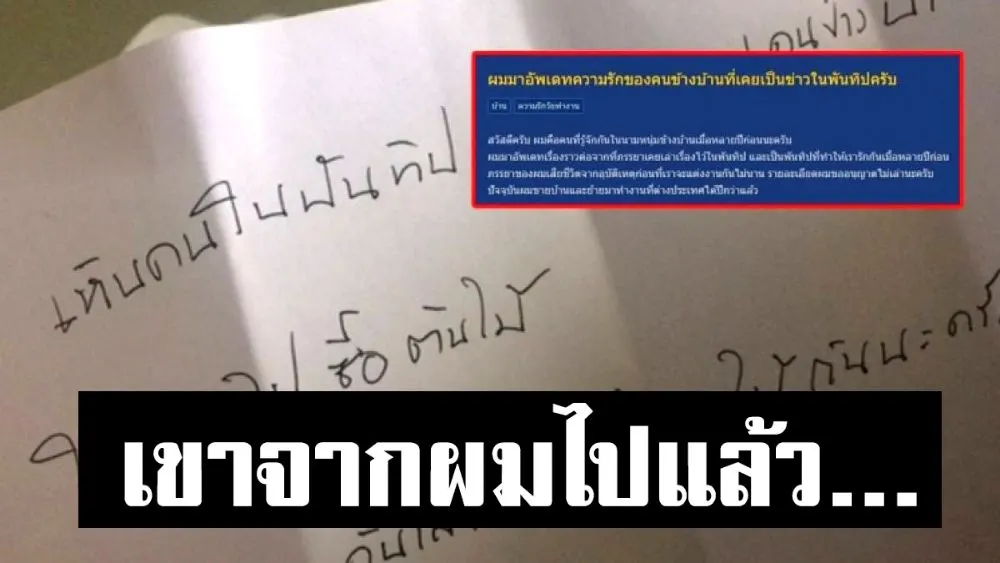 ผมไม่ได้คิดจะมาอัพเดทเรื่องราวของเราต่อ ส่วนหนึ่งคือลืมกระแสในพันทิปไปแล้ว อีกส่วนคืออยากให้เป็นความทรงจำที่ดีๆ และที่สำคัญที่สุดคือยังเจ็บปวดที่จะพูดถึงเรื่องราวของเราต่อ แต่ผมไม่ทราบว่าทำไมอยู่ๆ เรื่องของเราถึงกลับมาเป็นกระแสและแชร์กันมากมาย ผมอบอุ่นใจที่ได้เห็นกระทู้ที่เค้าเขียนอีกครั้งหลังจากไม่เคยกล้าเปิดมาอ่านอีกเลย แต่เมื่ออ่านคอมเมนท์ พบว่ามีคนจำนวนนึงที่พูดถึงเรื่องของเราว่าเป็นเรื่องแต่ง เป็นนิยายสิบบาท เจ้าของกระทู้ก็หายไปเลย ผมทราบดีว่าเป็นสิทธิ์ของทุกท่านที่จะคิด แต่ผมอยากจะมาเล่าเพื่อปกป้องความทรงจำของภรรยา ผมจึงอยากจะมาอัพเดทให้ทราบ ไม่อยากให้ความทรงจำของเราถูกมองเป็นเรื่องโกหก เรื่องแต่ง เป็นนิยายหลอกเด็ก แต่มันคือช่วงเวลาที่ดีที่สุดในชีวิตของผม แม้ว่ามันจะไม่ได้จบอย่างแฮปปี้เอนดิ้ง แต่ผมโชคดีมากที่ได้พบความรักที่ยิ่งใหญ่ครั้งนึงในชีวิต ผมเรียกเค้าว่าภรรยายแม้ว่าเราจะยังไม่ทันได้แต่งงานกัน แต่ในใจผม เค้าไม่เคยเป็นอย่างอื่นนอกจากภรรยาผมคงไม่ได้เข้ามาตอบอะไรนะครับ ล็อกอินนี้เป็นของเค้า และผมคงไม่เอามาใช้อีก ขอบคุณทุกๆ ท่านที่เคยให้กำลังใจเราในวันนั้น และเข้าใจผมในวันนี้ด้วยครับ.