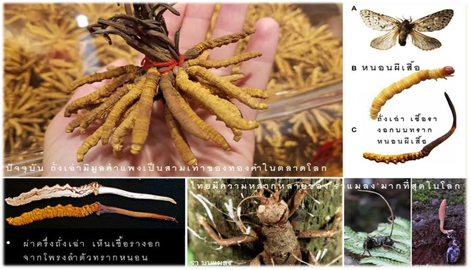 - “ถั่งเฉ่า” เป็น ‘ราแมลง’ เป็นเชื้อราที่อาศัยแมลงเป็นเจ้าบ้าน [host]เติบโตในที่สุดแมลงตาย เชื้อราหาเจ้าบ้านใหม่ โดยการสร้างอวัยวะสืบพันธุ์ที่มีสปอร์ งอกออกมาจากซากแมลง สปอร์ถูกดีดออกและตกลงไปบนแมลงตัวใหม่ เป็นวัฎจักรเรื่อยไป ‘ราแมลง- หนอนผีเสื้อ' คนจีนเรียก “ถังเฉ่า” พร้อมอ้างเป็นยาสมุนไพรชูกำลัง เพราะความแปลกที่หน้าหนาวเป็สัตว์[หนอน]หน้าร้อนเป็นพืช[รา]ปรากฏการณ์ ‘ราแมลง’ มีอยู่ในธรรมชาติทั่วไป เฉพาะในประเทศไทยศูนย์พันธุวิศวกรรมฯ [ไบโอเทค]สำรวจที่เขาใหญ่พบถึง 400 สปีชีส์