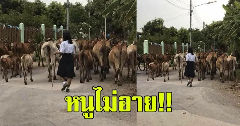 นักเรียนหญิง ไม่อายทำกิน ออกช่วยครอบครัวเลี้ยงวัว ทั้งชุดนักเรียน ไม่แคร์สายตาใคร