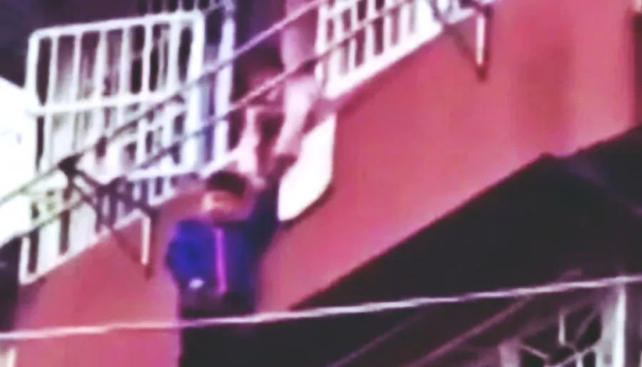 ลุ้นกันทั้งถนน พี่สาว 8 ขวบ กระโดดคว้ามือน้องชาย จะตกระเบียงชั้น 5 จับไว้แน่นไม่มีปล่อยรอเจ้าหน้าที่