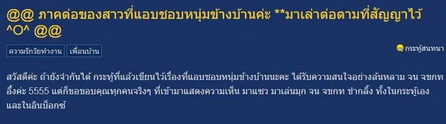 กระทู้ต้นเรื่องที่ 2 >> ภาคต่อของสาวที่แอบชอบหนุ่มข้างบ้านค่ะ