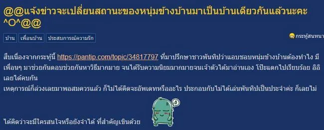 จากกรณีที่มีสาวคนหนึ่งได้ตั้งกระทู้ในเว็บไซต์พันทิปว่า “แอบชอบเพื่อนบ้าน ขอคำแนะนำจะทำอย่างไรดี” จนกลายเป็นกระทู้ที่โด่งดังเมื่อ 3 ปีก่อน มีคนมาร่วมแสดงความคิดเห็นหลายพันคน
