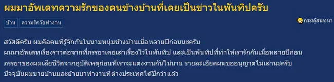 กระทู้ต้นเรื่องที่ 3 >> แจ้งข่าวจะเปลี่ยนสถานะของหนุ่มข้างบ้าน
