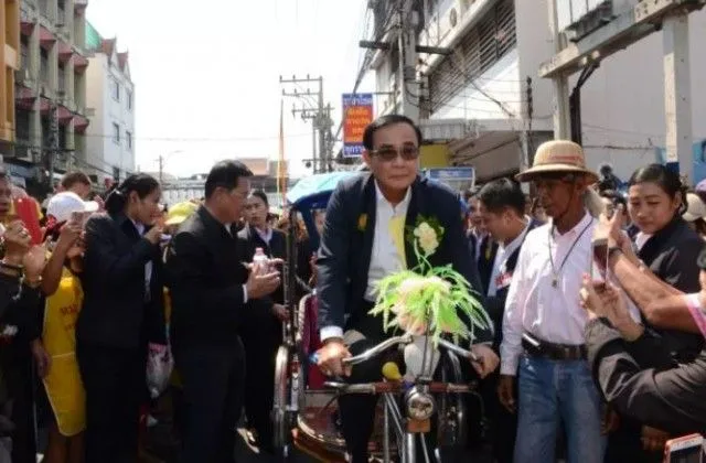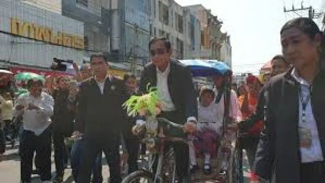 จากนั้นได้ขึ้นนั่งรถสามล้อถีบคันแรกที่มี นายจ่อม กิตติสกธ์ อายุ 67 ปี ชาวชุมชนเบญจรงค์ เป็นเจ้าของหมายเลขทะเบียนรถสามล้อ 08960 โดยนายกรัฐมนตรีแย่งสารถีปั่นสามล้อด้วยตัวเอง งานนี้ทำเอาชาวบ้านแห่ซื้อ เลขทะเบียนรถสามล้อ 08960
