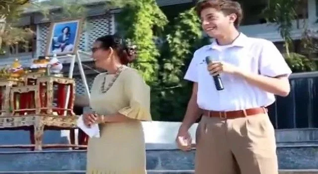 "สวัสดีครับ วันนี้วันสุดท้ายที่ผมได้อยู่ที่นี่ ในโรงเรียนนี้ไม่เคยเรียนไม่เคยทำอะไรเลย มาโรงเรียนมาเที่ยว มานอน" แล้วก้เงียบไปสักพักท่ามกลางเสียงเพื่อน ๆ ที่ปรบมือให้ก่อนที่คุณครูจะดึงไมค์กลับไปพร้อมพูดว่าวันนี้นักเรียนของครูอาจจะตื่นเต้นจึงไม่รู้จะพูดยังไง แต่ความเป็นจริงแล้วเขารักประเทศไทย ชอบคนไทย รักคนไทย