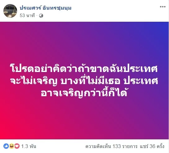 อ.ปรเมศวร์ เหน็บแรง "โปรดอย่าคิดว่าถ้าขาดฉันประเทศจะไม่เจริญ"