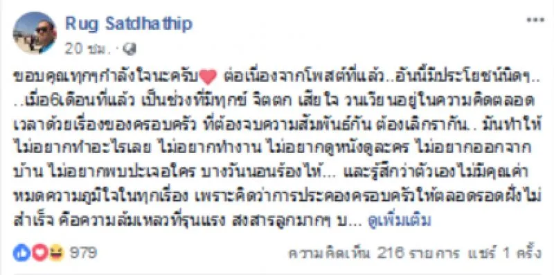 โดยในเฟสบุ๊ก Rug Satdhathip โพสต์ข้อความว่า