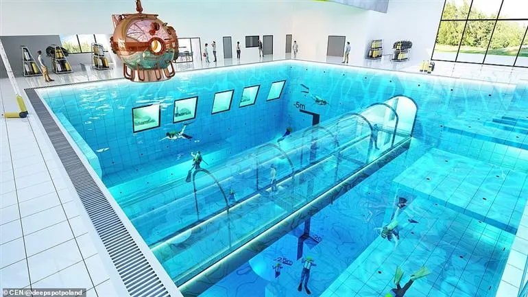 นี่คือ DeepSpot สระว่ายน้ำในเมือง Mszczonów ประเทศโปแลนด์ เตรียมที่จะเปิดตัวในช่วงฤดูใบไม้ร่วงของปีนี้ โดยมันกำลังจะเป็น สระว่ายน้ำที่ลึกที่สุดในโลก แห่งใหม่ ด้วยความลึก 45 เมตร ลึกกว่าสระเจ้าของสถิติเดิมจากอิตาลี่ที่มีความลึก 40 เมตร เรียกว่าเฉือนกันไป 5 เมตรเน้นๆ ความลึกระดับนี้ต้องใช้น้ำมากถึง 8,000 คิวบิกเมตร เพื่อเติมสระให้เต็ม