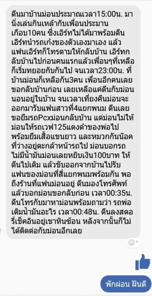 แฟนสาวของเพื่อนสนิท น้องดิน โผล่เล่าเหตุการณ์ เอี่ยวทำหายตัวกว่า 10 วัน