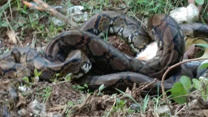 เมื่อวันที่ 15 มี.ค.62 นางจ่อย เจ้าของร้านแม่จ่อย คำชะโนด ซึ่งตั้งอยู่ทางทิศเหนือของเกาะคำชะโนด บ้านโนนเมือง หมู่ที่ 11 ต.บ้านม่วง อ.บ้านดุง จ.อุดรธานี ที่จำหน่ายอาหารให้กับนักท่องเที่ยวที่เดินทางมาไหว้ปู่ศรีสุทโธ และแม่ย่าศรีปทุมมา เปิดเผยว่า เมื่อ 2-3 วันก่อน ตนพบกับงูเหลือมยาวเกือบ 4 เมตร เลื้อยออกท่อน้ำข้างที่ฉายภาพยนตร์ของแจ่มจันทร์ ซึ่งงูเหลือมตัวดังกล่าวกำลังรัดตัวแมวจะกลืนลงท้อง