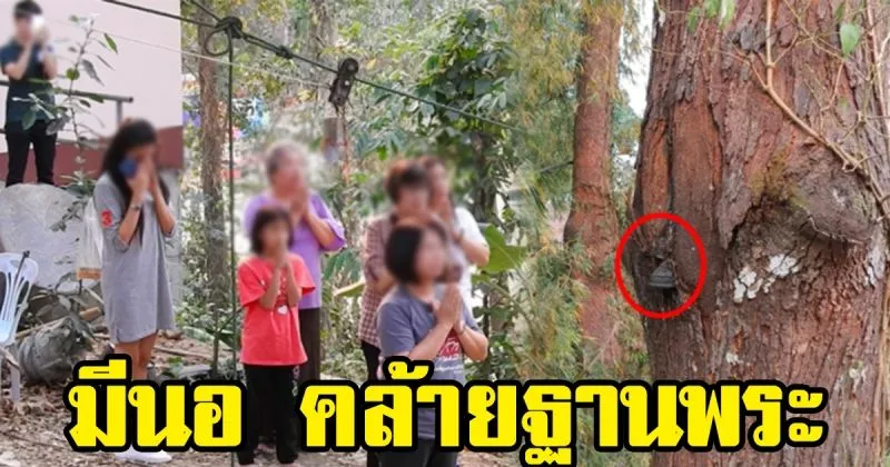 ชาวบ้านแห่กราบไหว้ ต้นไม้มีนอ งอกออกคล้ายฐานพระพุทธรูป ใกล้ถ้ำหลวง