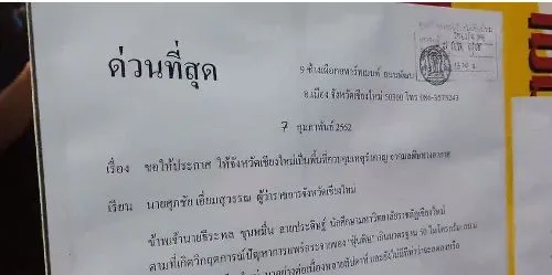 มาพร้อมกับป้ายบอร์ดติดจดหมายเปิดผนึกที่เรียนด้วยตัวเอง 2 ฉบับ มาแสดงออกเชิงสัญลักษณ์พร้อมกับแจกจ่ายจดหมายเปิดผนึกถึงผู้ว่าราชการจังหวัดเชียงใหม่ โดยฉบับหนึ่งเรียกร้องให้ผู้ว่าราชการจังหวัดเชียงใหม่ ประกาศให้จังหวัดเชียงใหม่เป็นพื้นที่ควบคุมเหตุรำคาญจากมลพิษทางอากาศ จากปัญหาหมอกควัน และไฟป่าที่ส่งผลกระทบต่อสุขภาพ การท่องเที่ยว และเศรษฐกิจของเมืองเชียงใหม่ ก่อนหน้านี้ได้มีการยื่นหนังสือถึงผู้ว่าราชการจังหวัดเชียงใหม่เมื่อวันที่ 13 กุมภาพันธ์ 2562 แล้วครั้งหนึ่งแต่ก็ยังไม่ม่มาตรการใดๆออกมา ให้เห็นเป็นรูปธรรม