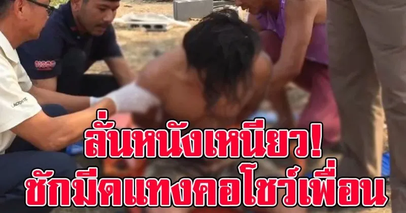หนุ่มโชว์เพื่อน กลางวงเหล้า ลั่นมีของดีหนังเหนียว ชักมีดแทงคอตัวเอง