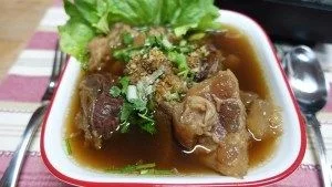 ต้องเคี่ยวจนให้ยางในเนื้อแตกออกมา สังเกตุง่ายๆคือ จะมียางเหนียวๆออกมา หลังจากได้เนื้อที่นุ่มแล้วพร้อมเสริฟ นำผักที่ชอบวางไว้ในชาม ถ้าจะให้เข้ากันได้ดีต้องผักกาดหอม ตามด้วยเนื้อเปื่อย ราดด้วยน้ำซุปเครื่องเทศที่ต้มไว้ในหม้อแรก โรยด้วยพริกไทยเล็กน้อย เวลาทานเสริฟคู่กับพริกน้ำส้ม และพริกป่น(คั่วเอง) (อย่าลืมต้มน้ำซุปในหม้อแรกตลอดด้วยนะครับ ไม่ใช่ปล่อยให้เย็น)
