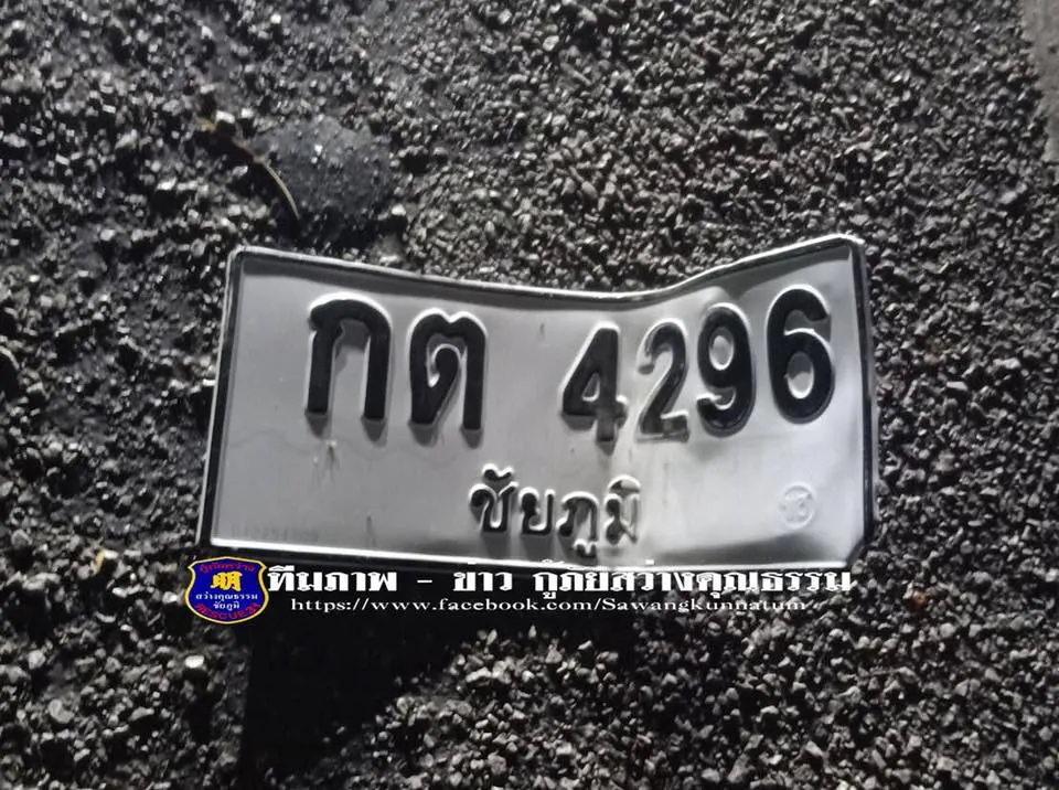 พบป้ายทะเบียนรถเก๋ง ตกอยู่กลางถนน เป็นป้ายทะเบียน กต 4296 หมวดจังหวัดชัยภูมิ ที่ตกอยู่ ห่างออกไปราว 1 กม.หางออกไปพบรถบรรทุกอ้อย ยี่ห้อฮีโน่ สีเขียว ป้ายทะเบียนตัวแม่ 83-4651 หมวดจังหวัดชัยภูมิ และ ป้ายทะเบียนตัวลูก 82-3804 หมวดจังหวัดชัยภูมิ โดยมีนายบุญยัง หมื่นรักษา อายุ 47 ปี อาศัยบ้านเลขที่50หมู่ที่6ตำบลหนองบัวบาน อำเภอจัตุรัส จังหวัดชัยภูมิ เป็นคนขับยืนรอให้การกับเจ้าหน้าที่