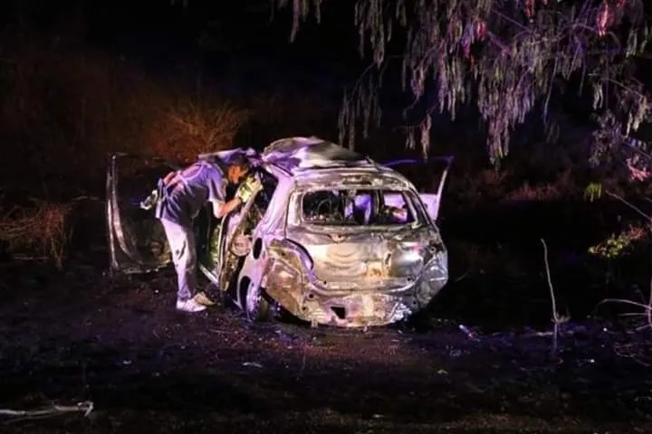 ที่เกิดเหตุพบรถเก๋งยี่ฮ้อมิซูมิชิ มิลาด สีขาว หมายเลขทะเบียน กต 4296 หมวดจังหวัดชัยภูมิ ตกอยู่กลางทุ่งนาข้างทาง เกิดระเบิดไฟลุกท่วม เจ้าหน้าที่จึงช่วยกันสกัดเพลิงที่อยู่ระหว่างลุกลาม ใช้เวลาไม่นาน สามารถควบคุมเพลิงไว้ได้ เข้าตรวจสอบภายในรถพบร่างผู้เสียชีวิตติออยู่ด้านหน้ารถ จำนวน 3 ศพ สภาพไหม้เกรียม ทราบชื่อผู้เสียชีวิตภายหลังชื่อ