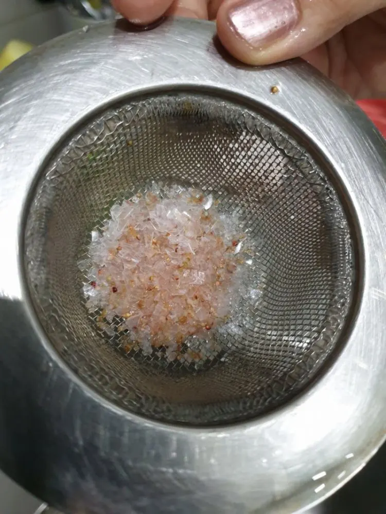 "ฝากพี่ที่ทำงานซื้อน้ำ ละแบบดูดๆไปเอ๊ะทำไมมีพลาสติกตอนแรกนึกว่าเม็ดสตอเบอร์รี่ เจอรอบแรกยังไม่เท่าไหร่ ดูดอีกเจออีกก็แบบเอ๊ะไม่โอละป่ะ ทีนี้เลยไปเอาที่กรองมาลองกรองน้ำออก คือน้ำเค้าก็อร่อยไงโอเคเบยเลยเสียดายน้ำ แต่ไม่คิดว่ากรองออกมาแล้วจะขนาดนี้อ่ะ"