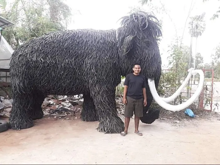 ฝีมือคนไทยดังไกลไปทั่วโลก!! สร้างสัตว์ยักษ์สุดอลังการ จาก "ยางรถเก่า"