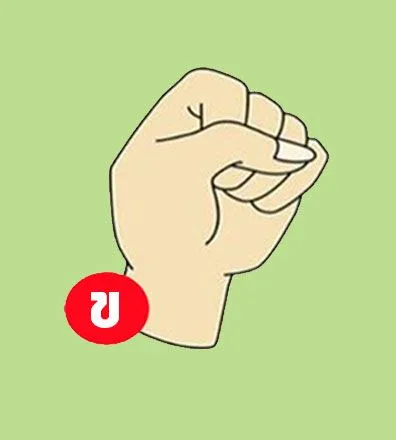 แบบ (ข) : นิ้วโป้งอยู่บนนิ้วกลางเป็นต้นไป