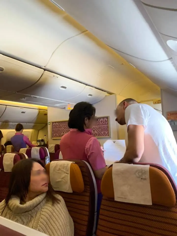 ล่าสุด ผู้ใช้เฟซบุ๊กชื่อ Supeeron Pete Mahasawangkul ได้ออกมาเผยเรื่องราวชุลมุนที่เกิดขึ้นบนเครื่องบินของไทย หลังจากที่ผู้โดยสารต่างชาติ นำสุรามาดื่มและสูบบุหรี่บนเครื่องบิน โดยเข้าของเฟซบุ๊กดังกล่าว ได้ระบุว่า