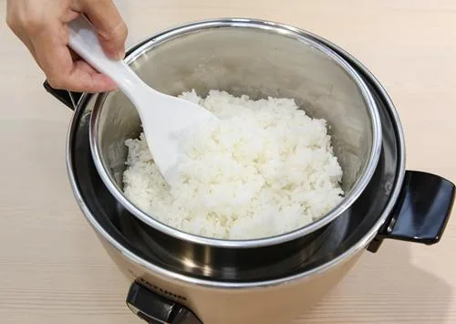 1.ก่อนอื่นตักข้าวออกมาจากหม้อก่อน และใช้ทัพพีคลี่ข้าวที่เกาะเป็นก้อนออกจากกัน