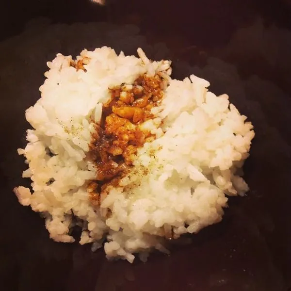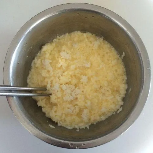 2.เติมแป้ง ,ซีอิ๋ว,เกลือ,ผงรสดี ลงไปในข้าว จากนั้นคนให้เข้ากัน