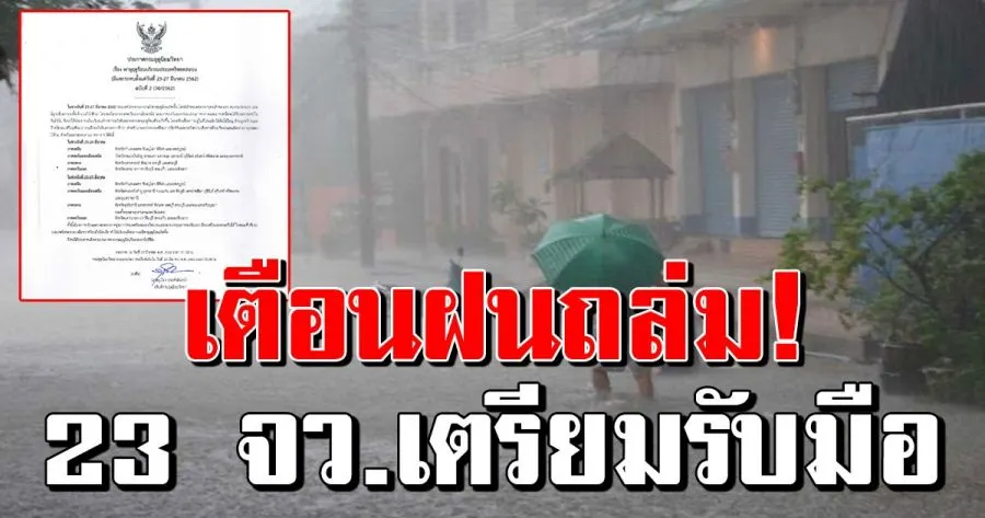 กรมอุตุฯประกาศเตือนฉบับที่ 2 พายุฤดูร้อน ถล่มครึ่งประเทศ วันที่ 23-27 พื้นที่เสี่ยงต่อไปนี้ เตรียมรับมือ