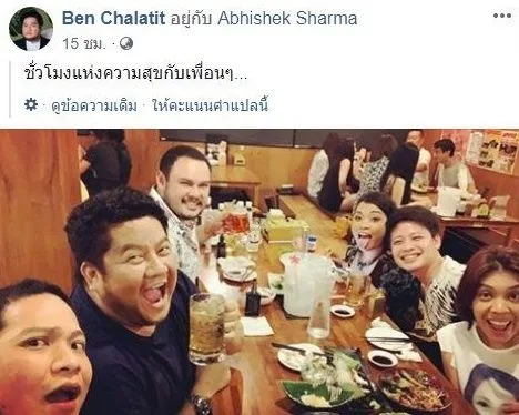“เมื่อเวลา 02.00 น. วันที่ 18 มี.ค. ตนได้เดินทางไปทานอาหารและดื่มกินที่ชั้น 3 ของร้านดังกล่าวกับกลุ่มเพื่อน 5 คน เป็นผู้ชาย 2 คน ผู้หญิง 3 คน ขณะที่กำลังสนุกอยู่ สังเกตเห็นมีกลุ่มของนักร้องชื่อดังมานั่งกินด้วยภายในร้าน จากนั้น เบน ชลาทิศ ได้ลุกขึ้นมาร่วมสังสรรค์กับคนภายในร้านทุกโต๊ะ ด้วยการชนแก้วเครื่องดื่มอย่างเป็นกันเอง กระทั่งต่อมาทราบว่ากลุ่มของเบน ชลาทิศ มีปากเสียงกับโต๊ะอื่น และมีการห้ามปรามกันเกิดขึ้น ก่อนเหตุการณ์จะสงบลง”
