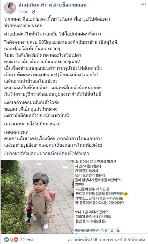 ทุกคนคะ คือแม่น้องคนนี้ัเขาไม่โอเค ที่เอารูปไปตัดอ่ะค่า